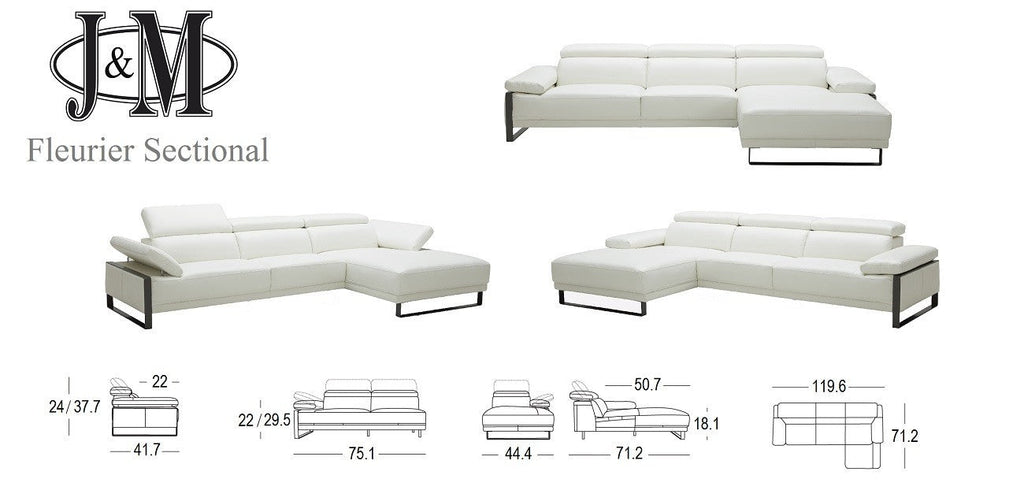 Imbued with awe-filled elegance, The Fleurier premium leather sectional is crafted from white premium Italian leather & contrasted in bold gunmetal grey legs to enhance the overall richness of the piece. The Fleurier premium leather sectional fully features 2 adjustable arms, & 3 adjustable headrests to provide added comfort.