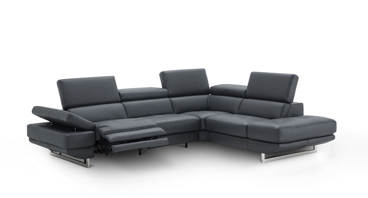 J&M is proud to introduce the newest addition to our premium leather recliner sectionals. The Annalaise Sectional by J&M has a power recliner to add that final touch of comfort to a beautifully crafted sectional. The power recliner is controlled at the touch of a button and stops at any position. This sectional is ideal due to our wall hugger features in which you are able to place the recliner as close to the wall as you’d like. The Annalaise sectional is designed with a padded armrest and 5 adjustable head cushions that feature a ratchet system for adjustability.