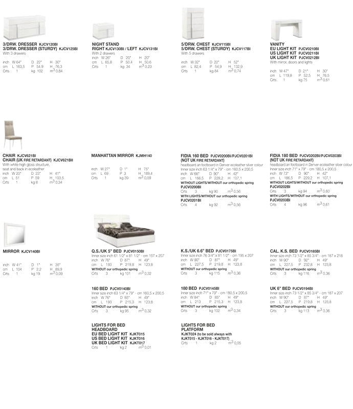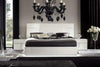 With an elegant white high gloss finish, chrome accents, and luxurious white Carrara marble tops on the nightstand, chest, and dresser, this set epitomizes sophistication. Furthermore, the inclusion of an LED Light Kit adds a captivating element by illuminating the bed and the headboard, enhancing the overall design of the Canova collection.