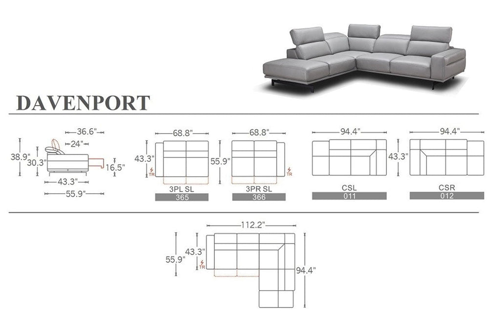 J&M is proud to present our newest innovation in the sectional category. The Davenport premium leather sectional is designed to maximize both comfort and flexibility. The Davenport can be used as a standard sectional or can be converted into a twin-size bed with the touch of a button. Upholstered in top-grain leather all around, and supported by gunmetal grey legs, this sectional is designed to accommodate any décor. Stocked in a neutral Element Grey, as well as a stunningly bold Snow White.