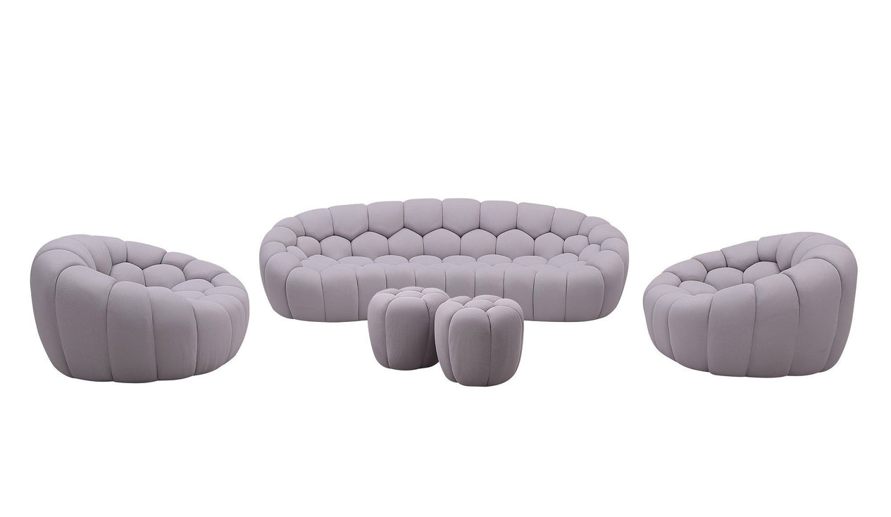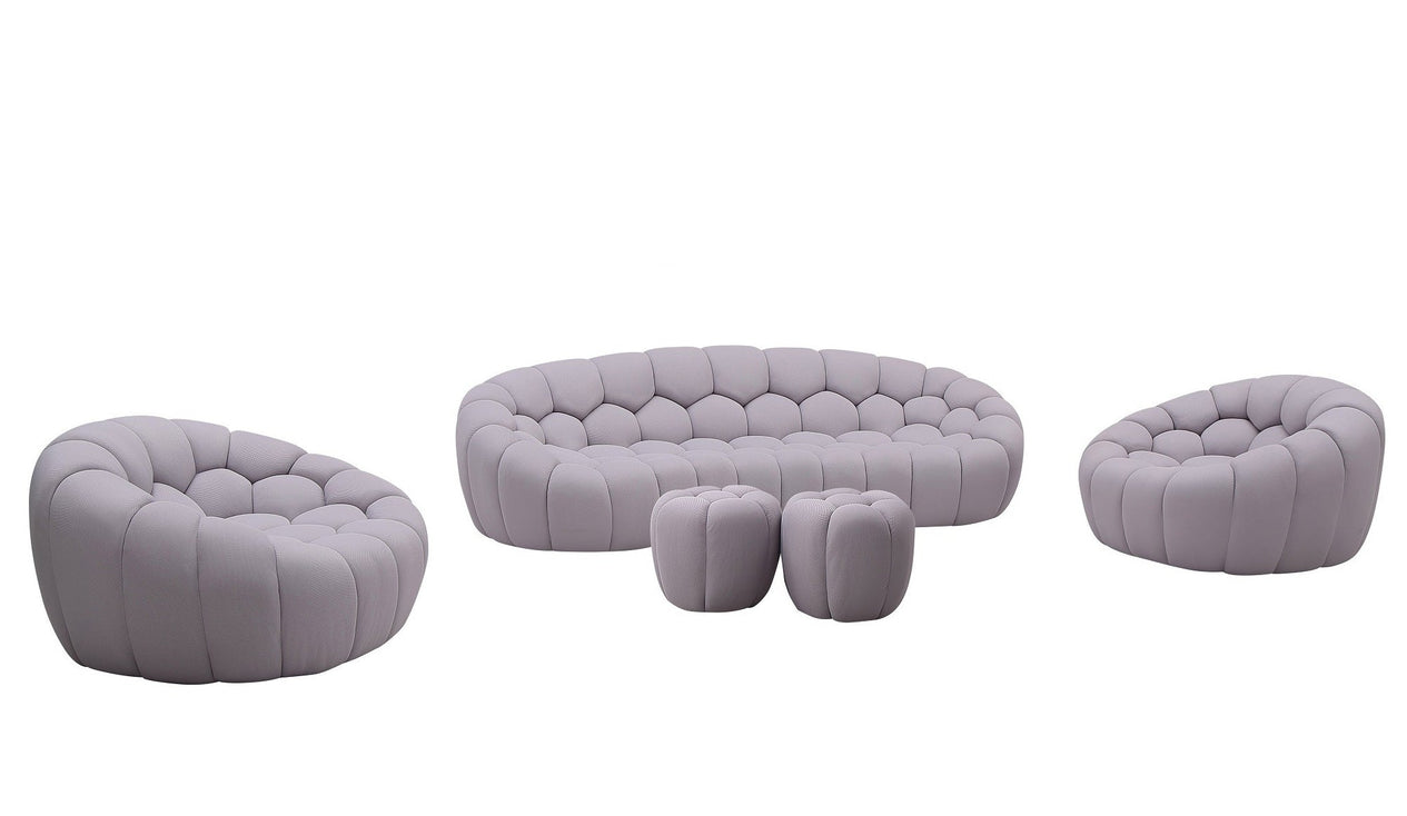 Presenting the "Fantasy" sofa, an exquisite creation that embodies the essence of modern design and artistic flair. This extraordinary sofa boasts a distinctive silhouette, featuring a rounded, bubble-like shape that envelops you in its embrace. The design showcases a seamless blend of bold curves and sleek lines, creating an eye-catching centerpiece for any contemporary living space.