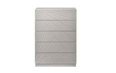 The Florence bedroom by J and M speaks volumes through simplistic details. The modern design made with an artistic array of angles features a beautiful white & light grey lacquer finish & an elegant leatherette headboard. Bedroom Florence by J and M Furniture. The Florence Bedroom has a unique "morphed" angle style on all of its components. The components come in a beautiful white & taupe lacquer finish. The bed features an elegant leatherette headboard which allows for lots of comfort.