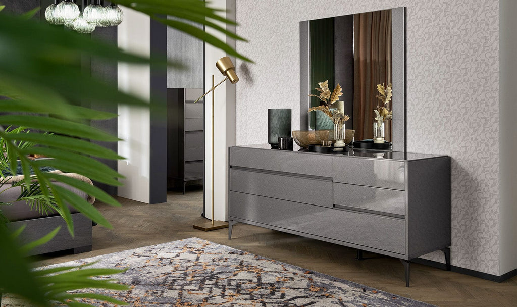 Immerse yourself in the captivating allure of the Graphite Collection, where the striking lacquered finish, light wood veneer, and metallic gray metal elements come together to create a harmonious and stylish ensemble. Elevate your home's beauty with this remarkable collection that effortlessly combines contemporary design with timeless elegance.