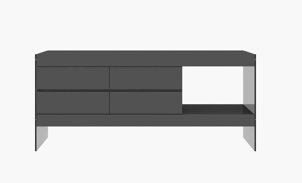 The Grey Cloud Modern Buffet offers a contemporary approach to design with a slight classic flavor. Durable wooden construction gives this set its ultra-modern exterior. The glass base renders an incomparable uniqueness with the Grey wooden frame.