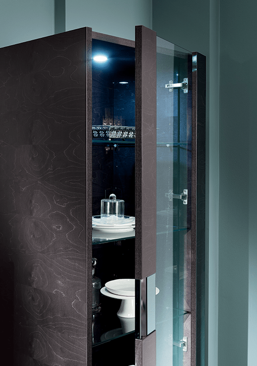 Discover the exquisite elegance of the Heritage 1-Door Curio. With its timeless yet modern design, this curio embodies sophistication. Adorned with a Dark Velvet Birch finish and elegant Chrome accents, it adds a touch of luxury to any space.
