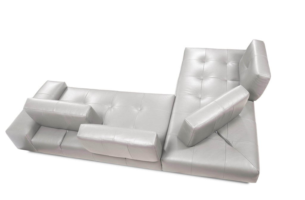 J&M is proud to introduce our new line of furniture Designed, Produced, and imported from Italy. This collection is crafted using the finest materials, durable solid wood construction, and premium thick Italian leather which is comfortable yet resilient. The I763 Sectional combines luxury, sophistication, and comfort making it perfect for any living space. Upholstered in premium Italian leather with a light tufted design, this sectional features adjustable back cushions & comfortable seat cushions. The chrome legs effortlessly elevate any room with a touch of contemporary design.