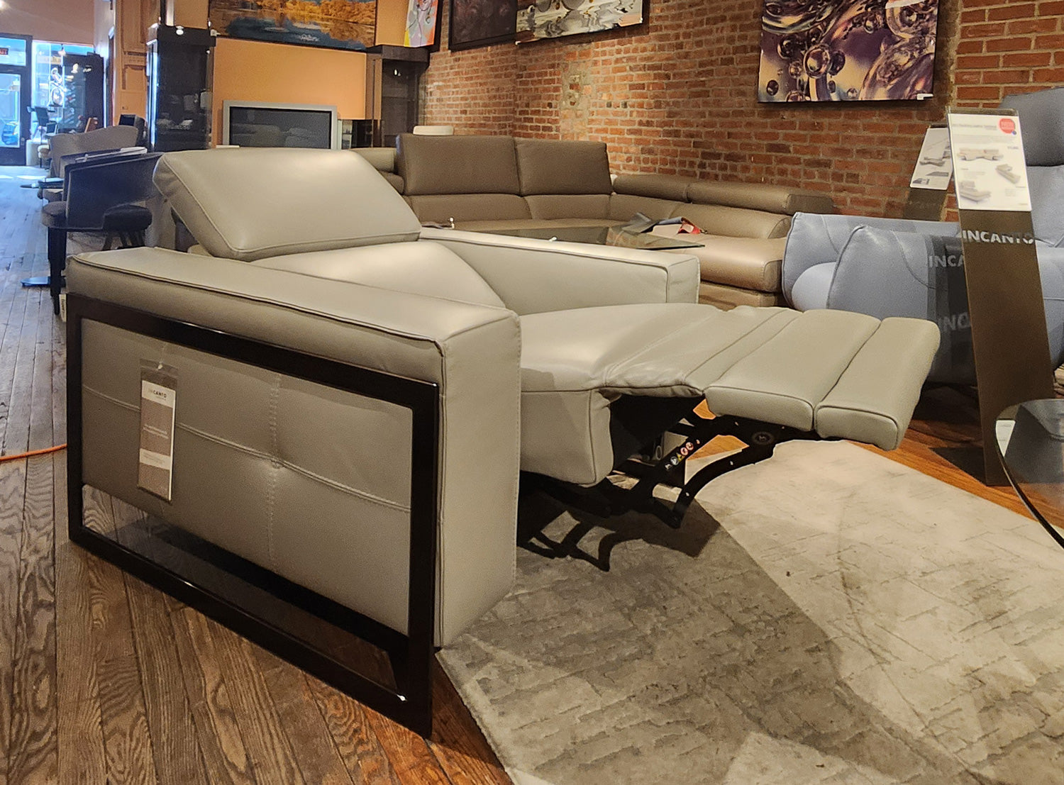 This chair features a softer interpretation of modern style, emphasizing comfort. A power recliner with independently controlled head and footrests. Top-grain leather makes this chair a beautiful anchor piece in a contemporary living room while not sacrificing comfort and functionality.
