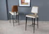 Magnum stools feature an energetic contemporary profile, with a rich palette of materials and sterling comfort. The sleek, tapered seat cushion rolls downward to join the aggressively splayed rear legs. Magnum’s concealed frame boasts tapered square steel legs and is available in any Elite powder-coat finish. The gleaming polished chrome footrest adds just a touch of sparkle. A sturdy champagne-plated bracket supports the plush upholstered backrest, which is offered either fully upholstered or wrapped in a rich walnut veneered shell. Choose from any Elite fabric or leather to customize Magnum to fit your decor. Although designed to complement our dynamic Hyper collection, Magnum stools will easily coordinate with any of our popular dining tables. Companion dining chairs are also available.