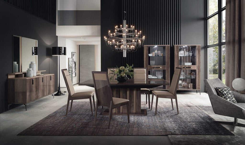 The Matera Dining Set is a very modern style by Alf Group.This gorgeous Italian dining collection would be a great addition to your dining room. Its stunning design and combination of gloss lacquer surface with grain surfaced matching finish will evoke lots of compliments from your family and guests.