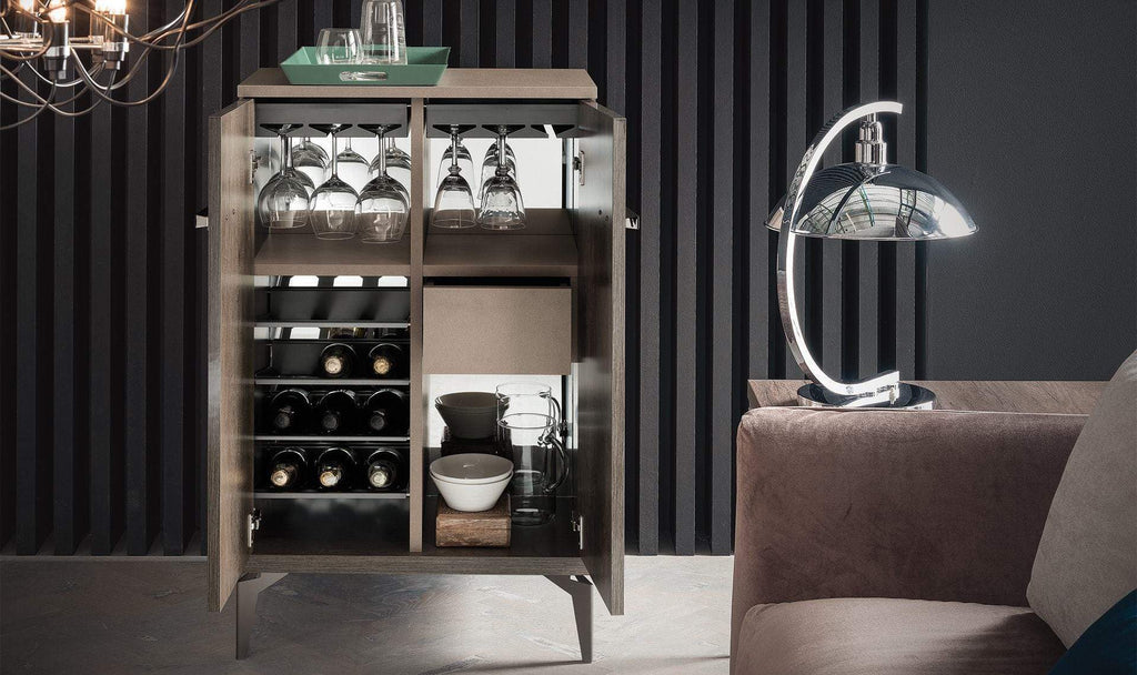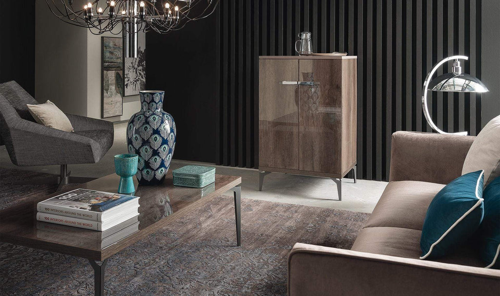 Matera Dining Table is available in two sizes, both extendable. Matching Chairs are upholstered in top-quality eco-leather that is soft and easy to clean. Matching buffet (two sizes), mirror, 1-door, and 2-door curios, and even bar cabinet - are also available to complement your dining area and fulfill it with lots of storage space for all your needs.