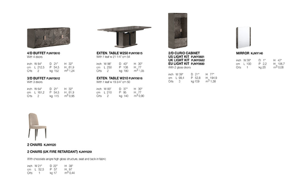 | Buffet Large: | W 83″ x D 21″ x H 32″ |