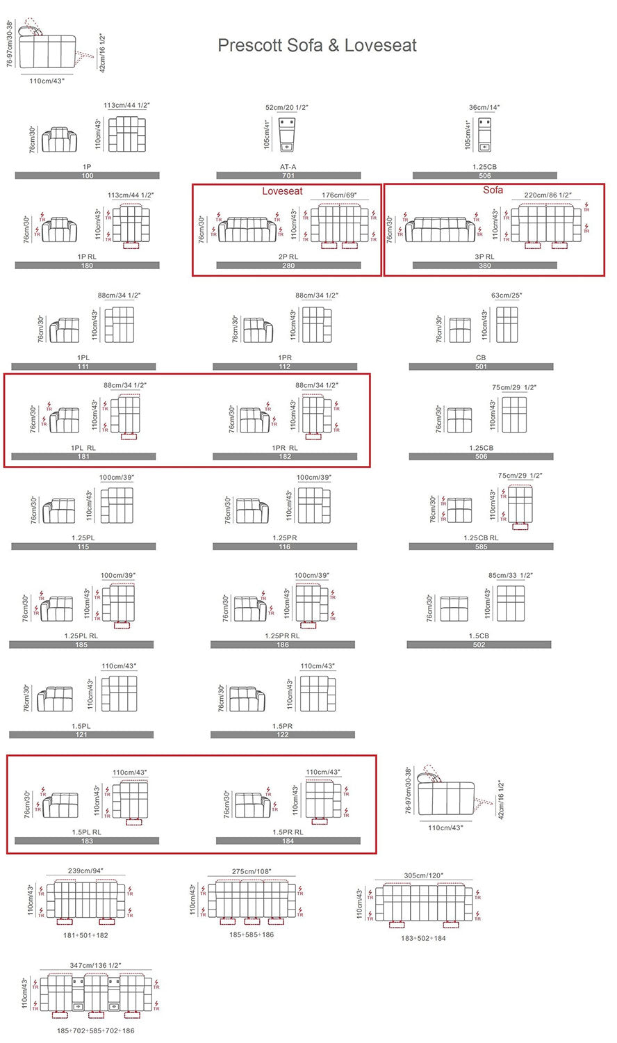 - Home Button Feature: Easily reset the power recliners to their original position with the touch of a button.
