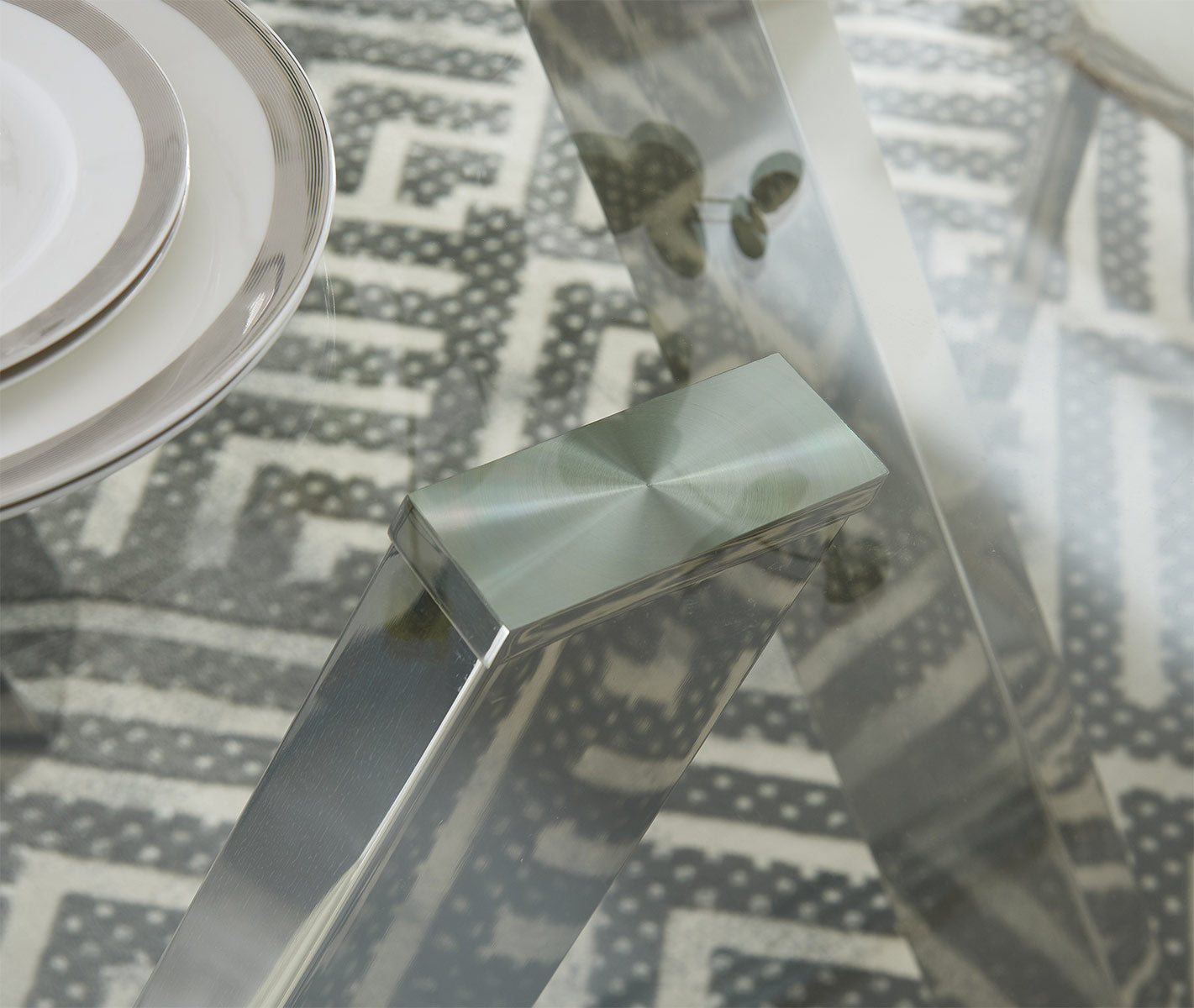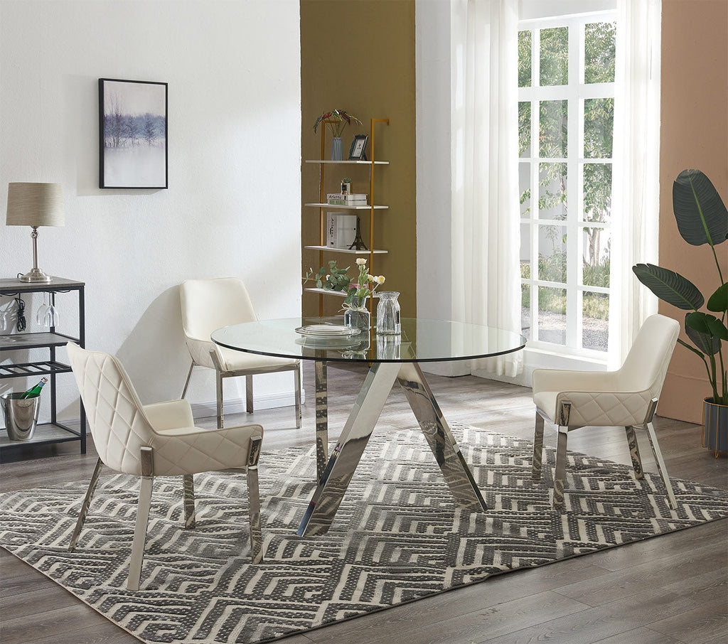 The Tower Dining Table by J&M Furniture is the perfect addition to any home breakfast nook or eat-in kitchen. The clear tempered glass tabletop is accented by a modern polished steel base. The sleek profile is a perfect fit for any home looking to maintain a minimalist aesthetic.